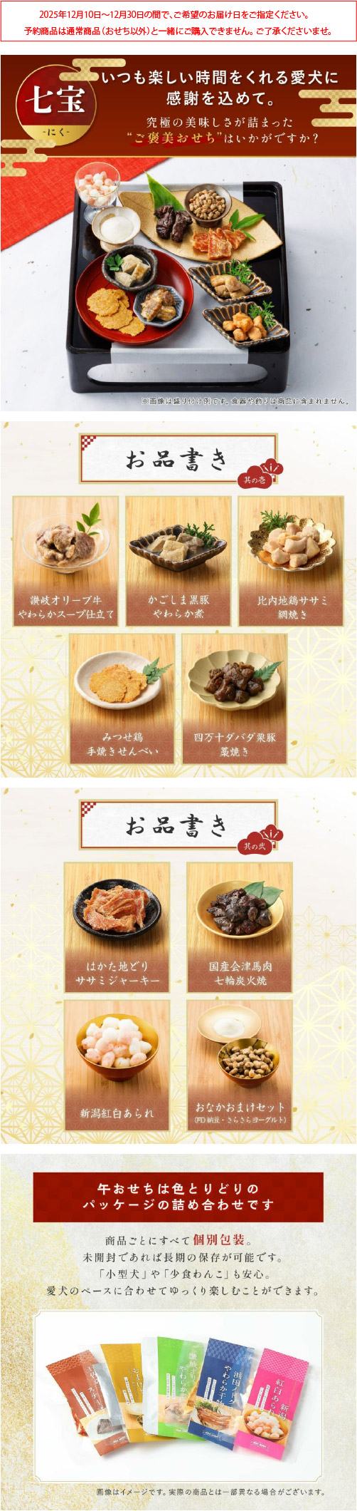 予約商品 12月お届け 送料無料 ドットわん 2026年 (午うま)おせち 七宝-にく
