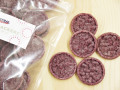 | アントシアニン豊富な紫いもを主原料に、小麦やトウモロコシといった穀類を一切使わずに仕上 げました。昔懐かしいポンせんべいのようなさくさくしたやわらかい口当たりなので仔犬やシニ ア犬にも安心です。 甘味料や着色料はもちろん不使用、紫いもの自然な甘みです。直径約4.5cmと大ぶりながら、1枚 たったの約4kcalと低カロリーです。 |