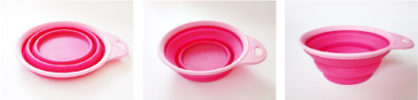 使わないときはその名の通りぺたんこに。使うときは指でパコっと簡単に水のみボウルに変身!