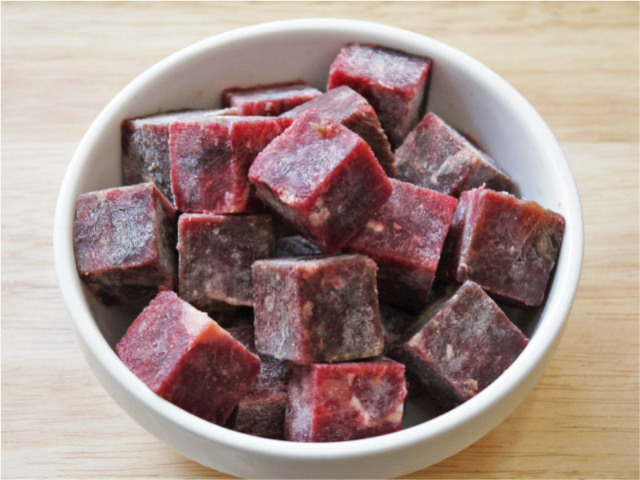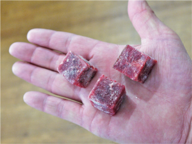 ※お好みの分量で解凍・給餌しやすい角切りカットです。赤身肉はスネ肉を使用していま