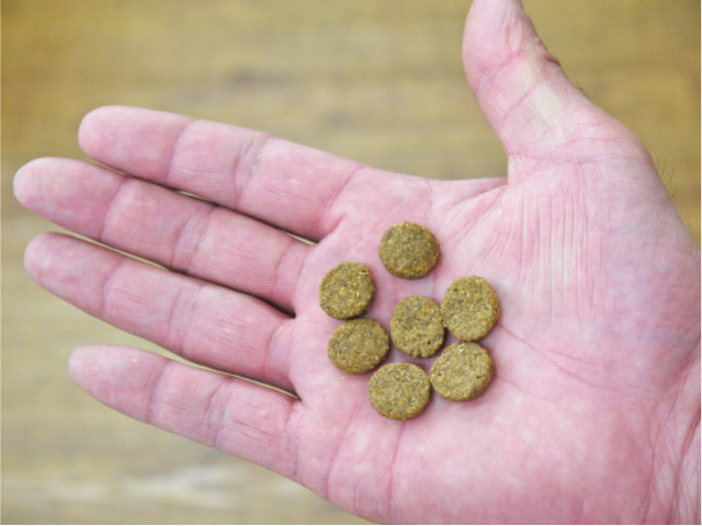 嗜好性の高い原材料を厳選して使用し、果物や穀物の繊維質を配合することによって愛犬の消化