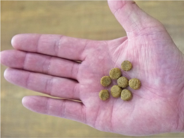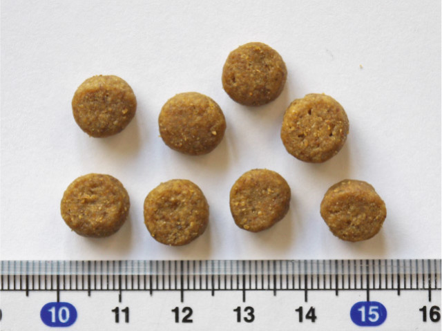 ■保証分析値 タンパク質28%以上、脂質18%以上、粗繊維3.5%以下、灰分9.0%以下、水分10%以下、