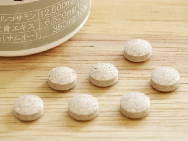 ■原材料 オイスターカルシウム、発酵グルコサミン、コラーゲンペプチド、サメ軟骨エ