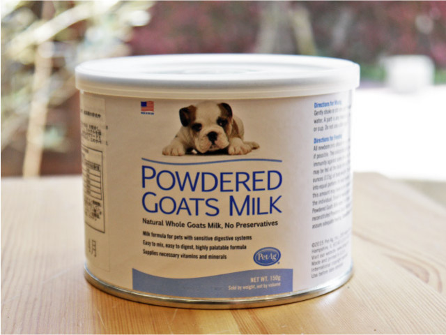 ●離乳前の幼犬(幼猫)には、ゴートミルク1に対しぬるま湯2の割合で溶かしたものを、体重115gに